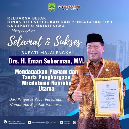 Selamat dan Sukses Kepada Bapak Bupati Majalengka atas diraihnya Penghargaan Wredatama Nugraha Utama Admin Disduk Octobar 06,2025 Berita 8 Dilihat