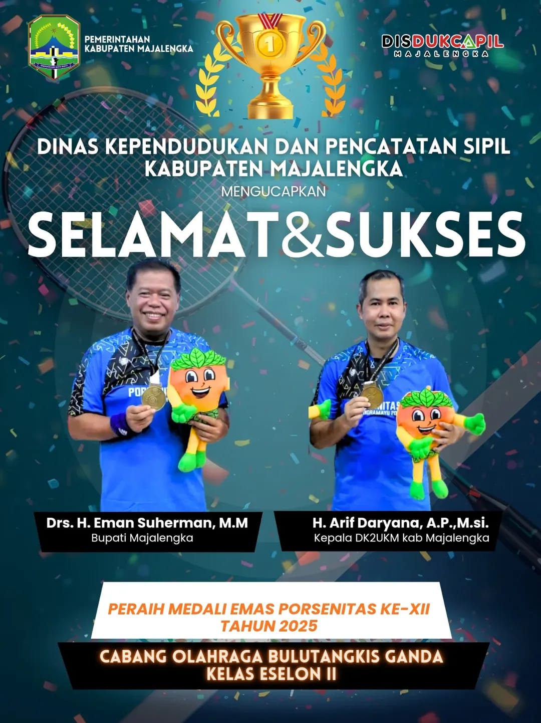 Selamat Kepada Bapak Bupati Majalengka atas diraihnya Medali Emas Porsenitas ke-XII Tahun 2025 Admin Disduk Octobar 14,2025 Berita 9 Dilihat